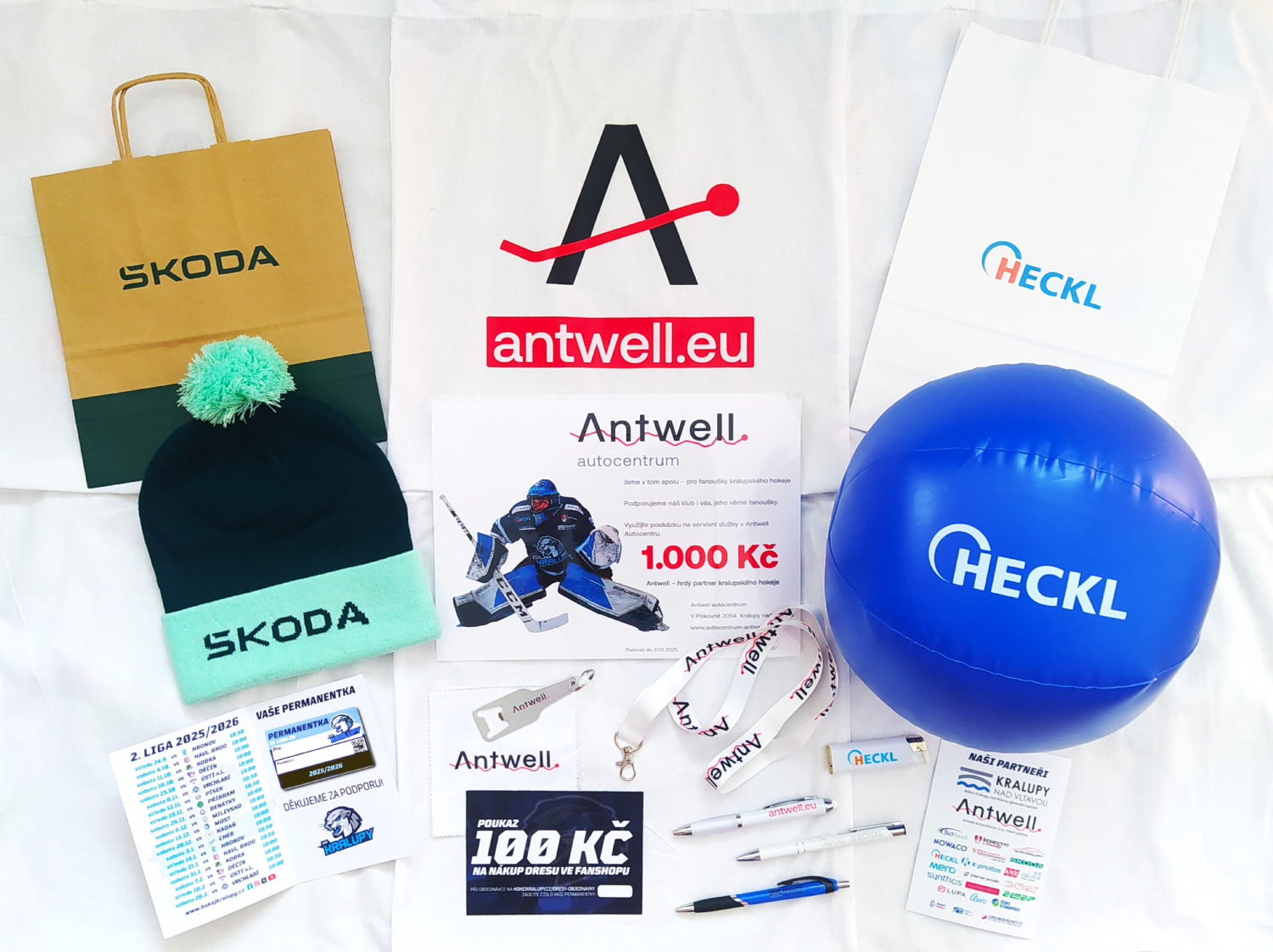 Vaší podpory si vážíme a proto máme pro každého permanentkáře jako poděkování připravený bohatý dárkový balíček, ve kterém najdete mimo jiné slevový voucher na nákup dresu ve fanshopu, poukaz v hodnotě 1000 Kč na servisní služby v Antwell Autocentru a další zajímavé pozornosti i od dalších našich partnerů Heckl a Auto Kralupy. Každý z permanentkářů se také zařadí do slosování o podepsaný dres celým týmem a společný trip s našimi hráči na vybrané venkovní utkání!