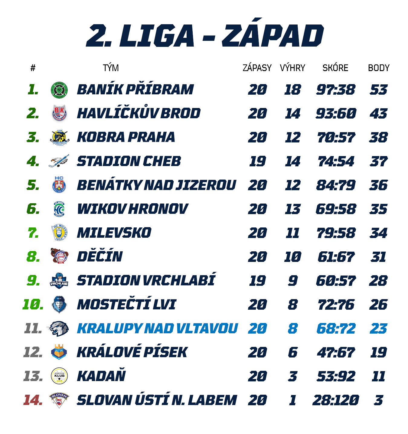 Na malé vítězné vlně však po Labi do Děčína dorazí i naše kralupské vydry, které v posledním sobotním kole přehrály 5:4 po prodloužení silné Milevsko a utnuly tak čtyřzápasovou šňůru těsných porážek, kdy vyšly na prázdno proti oběma lídrům Příbrami s Havlbrodem, 2:3 nestačily na ofenzivní Benátky a ve stejném poměru neuspěly na Kobře. Před nepříznivou sérií přitom měly Kralupy za sebou deset utkání, z nichž vytěžily sedm vítězství a jedno z nich bylo v poměru 4:1 právě proti Děčínu. Zvládnou Kralupští navázat na domácí úspěch i v odvetě ve venkovním prostředí a na severu Čech vybojovat druhou výhru v řadě?