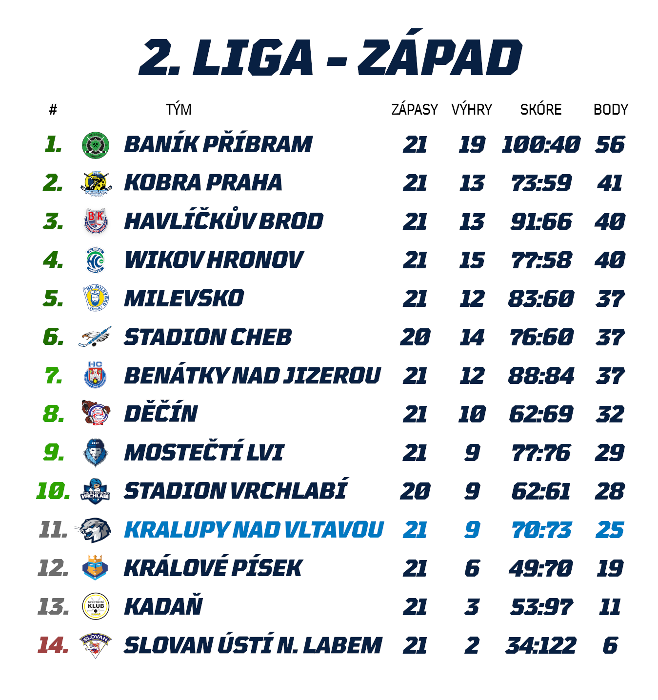 Nejen Most navíc bude bojovat o třetí výhru v řadě, ale také Kralupáci. A-tým předešlou sobotu vyprovodil před vlastním publikem 5:4 po prodloužení silné Milevsko, načež uspěl v nájezdové loterii v utkání dvou brankářů 2:1 v Děčíně. Na pikantnosti sobotního střetnutí navíc jisté přidá i fakt, že v případě tříbodového úspěchu se Kralupští právě na rozjetý Most dotáhnou na rozdíl jediného bodu v tabulce.